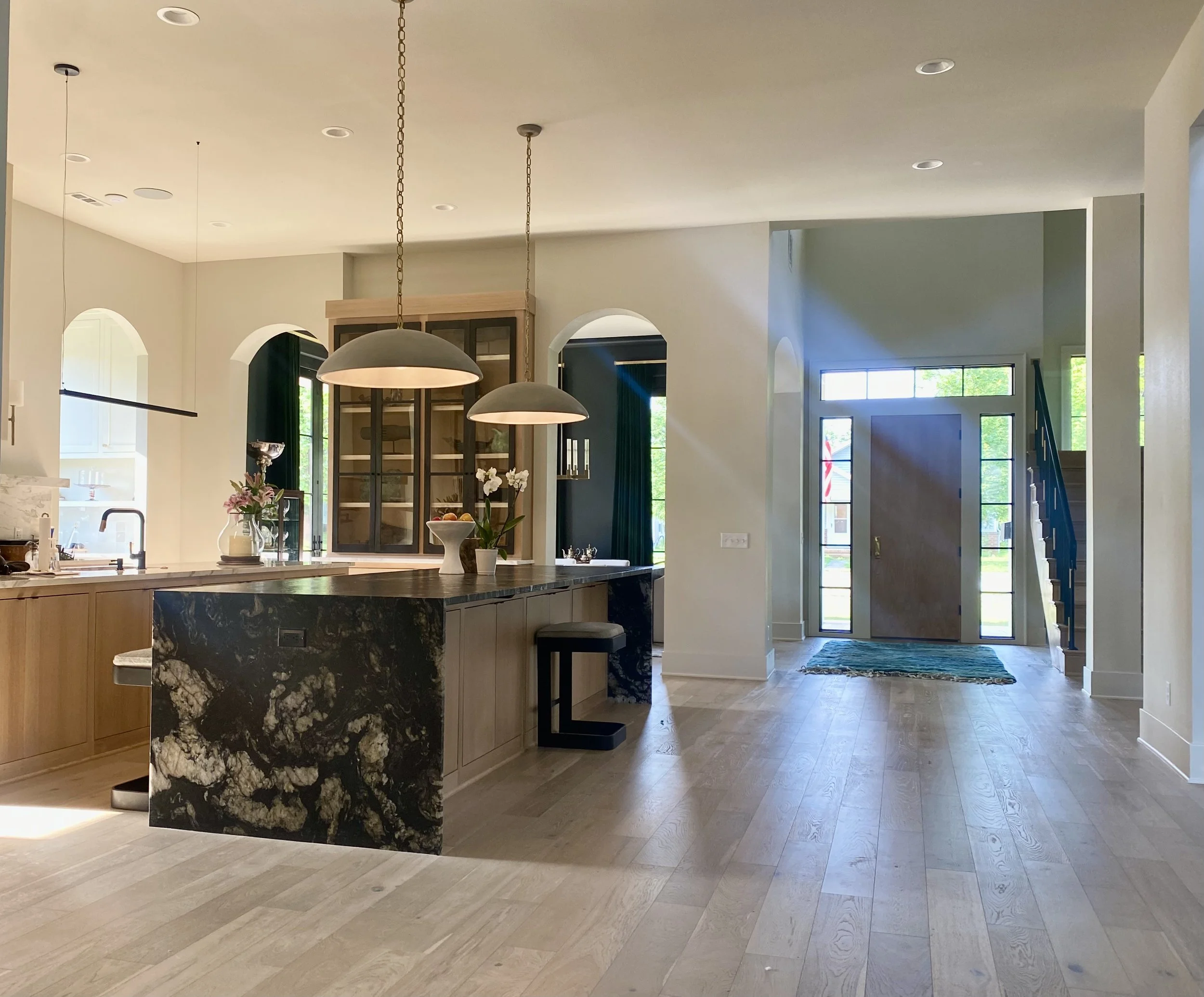 This Modern Transitional house is lives in the heart of Bentonville, Arkansas and is a local favorite. Although there were challenges such as a tight site constraint and access issues with a corner lot, we designed the client’s dream home with exterior design proportions that are balances and harmonized. The interiors include arches to enhance the spaces with unique attention to the client’s antiques, window placement, and flow. There is natural light coming from every angle, increasing functional living and efficiency of spaces like the scullery, pantry, and laundry areas.